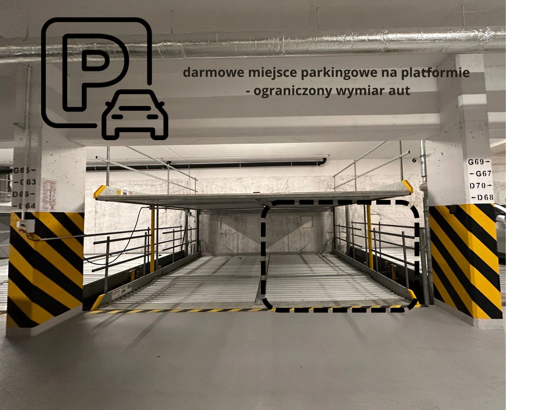 - Garaż podziemny z platformą parkingową – dostępne miejsce parkingowe przeznaczone wyłącznie dla samochodów małych i średnich (ze względu na charakter platformy parkingowej)